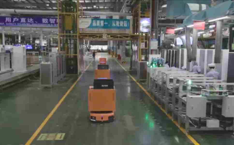 为车载冰箱物流配送打造的智能解决方案,,包含产中物流通过潜伏举升AMR搬运至线边,,产后成品物流智能仓储,,,,流程包含产中物流智能齐套入库,,,线边安灯叫料AMR智能配送至线边,,,成品入库、、、、出库,,,通过无人堆高车机器人,,,,智能仓储管理替代人工作业管理,,,,实现更高存储、、、更高效率、、、、更具柔性化的解决方案。。。